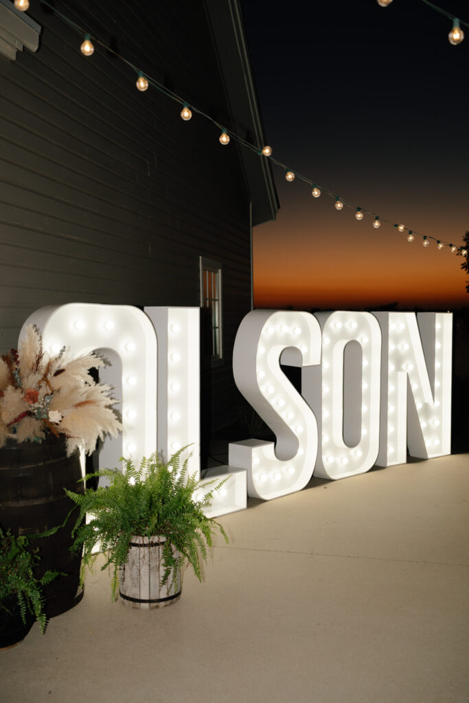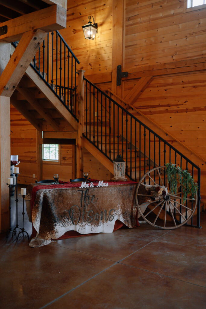 Receptions at McGranahan Barn weddings are unique because you get an indoor-outdoor feel if you open up the barn doors and add some cocktail tables to the patio. Caden and Britnee had a mobile bar brought in to set up on the patio for their guests too.