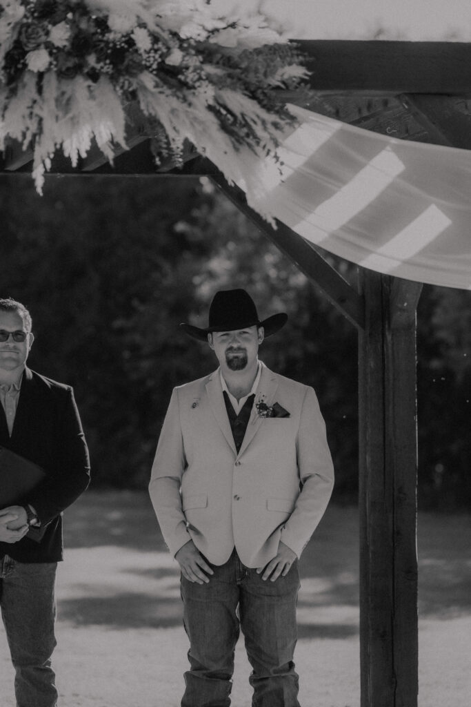 At the McGranahan Barn the pampas grass on their arch was blowing perfectly in the breeze during their outdoor wedding ceremony.